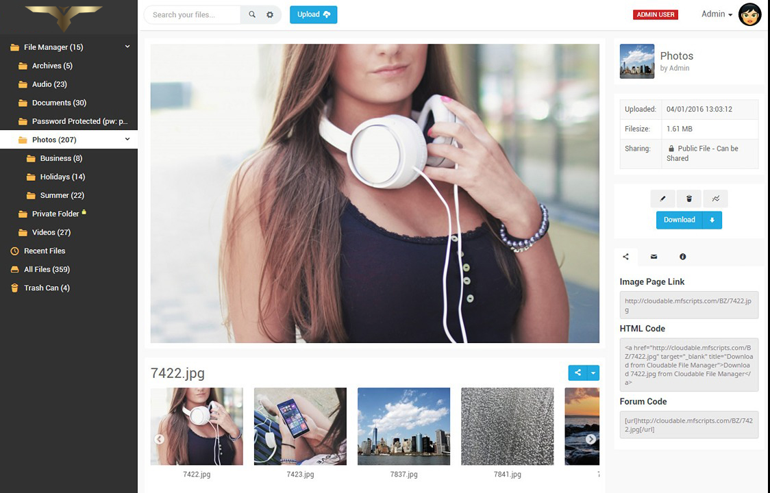 • Built using ajax so the entire file manager is lightning fast!
