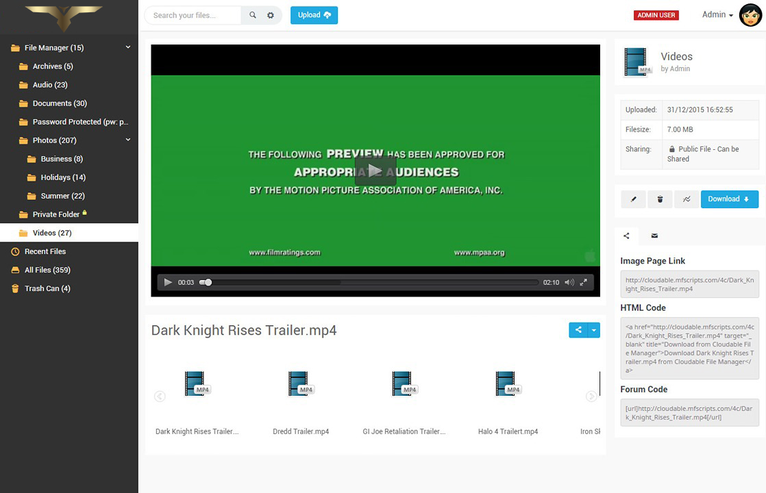 • Added option in admin to block the same file from being re-uploaded. Optional on file remove and automatic after removal on abuse reports.