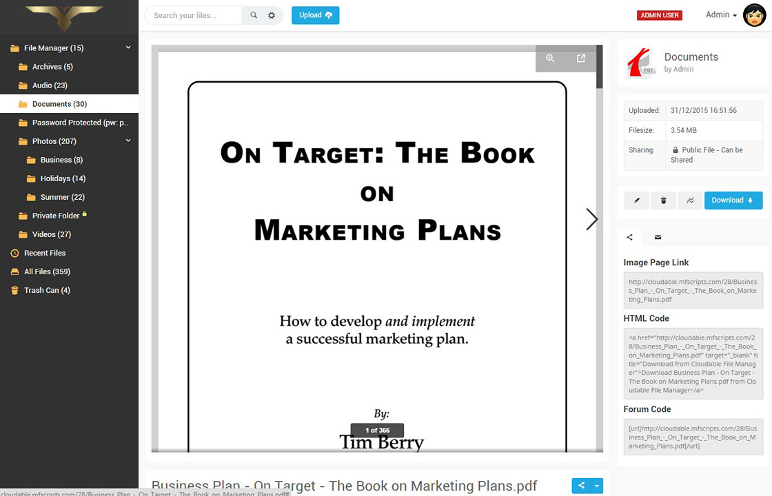 • Scale your storage by using your own dedicated server storage (direct downloads/uploads).