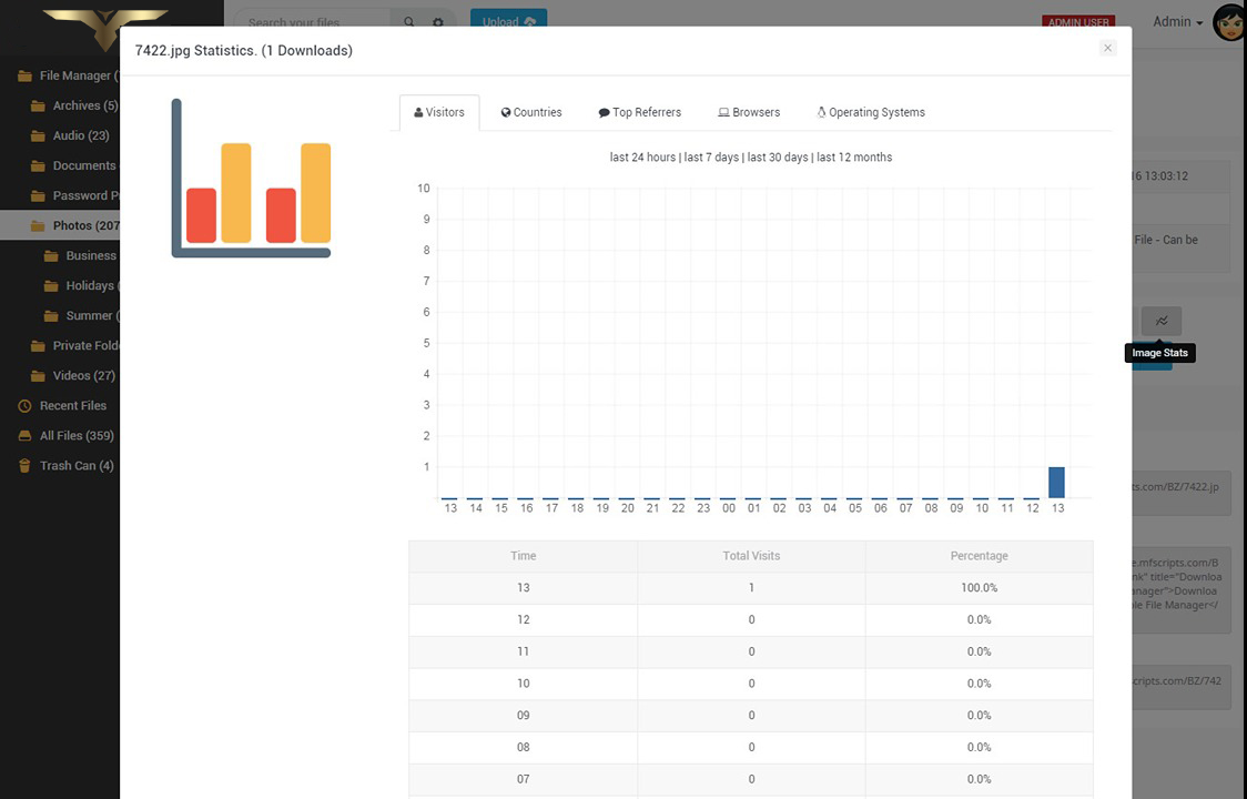 • Sort file listing by filename, file size, date uploaded, last access and total downloads.
