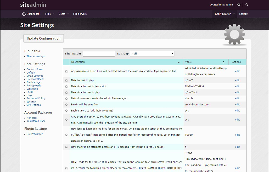 • Via the admin area easily set the logo, extra css and site skin.